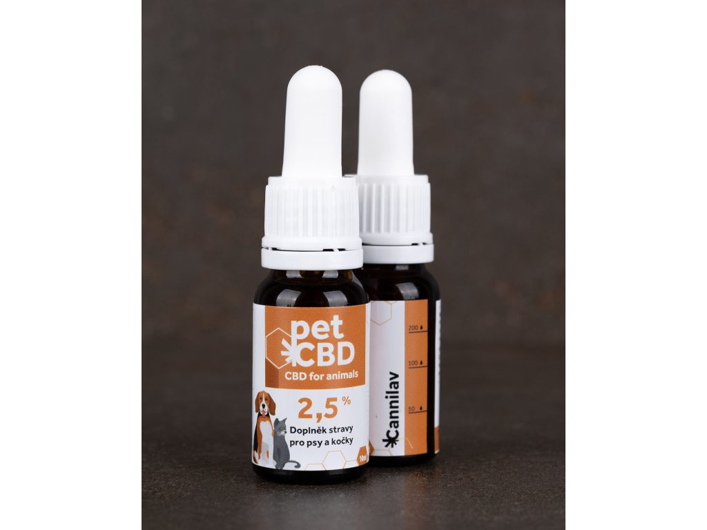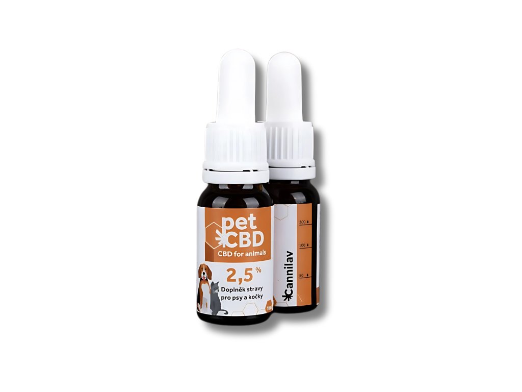 Pet CBD 2,5 % izolát – jemný CBD olej pre domácich miláčikov, obohatený o šantu kočičí a anýz. Vhodný aj pre menšie plemená alebo citlivejších jedincov. Obsahuje čistý CBD izolát, bez THC.