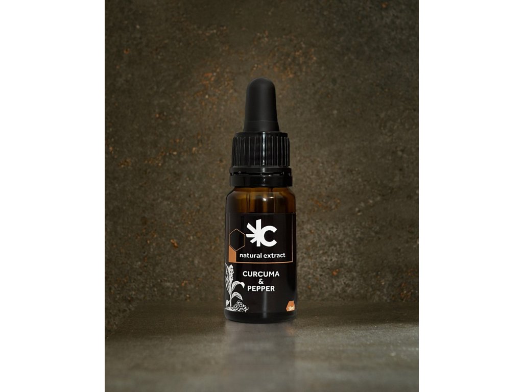 Premium oil with the natural aroma of turmeric (Curcuma longa) and black pepper (Piper nigrum), dissolved in high-quality MCT oil derived from coconut oil. Ideal as a daily supplement or for phytotherapy use.